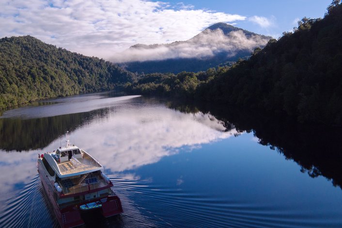 Disembark once again for a stroll through the hushed, lichen-covered rainforest and one of its oldest inhabitants - a 2000-year-old Huon Pine.