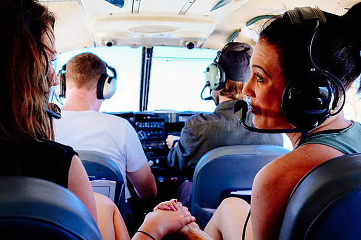 The experience is about 2 hours long, including a presentation, refreshments, flight briefings, and a 45min to 1 hour flight around the islands. The flight route takes you from Archerfield Airport out east just south of the Brisbane City. After overflying the Brisbane Coastline, Moreton Bay and the coral reefs come into sight - teeming with marine life this area is one of the most important coastal resources in Australia. Dolphins, Sting Ray, Sharks, Turtles, and an abundance of other fish populate the waters. After flying across Stradbroke Island, the flight takes you up the eastern coastline towards Point Lookout and Amity Point. Crossing the shallow waterway in-between Moreton and Stradbroke Island is especially beautiful during the changing of the tides, as the water currents can flow at tremendous speeds creating wild rapids and standing waves in the small channel. After flying up the eastern coastline of Southern Moreton Island and across the famous Sand Dunes, the return journey will take you down the Western coastline of Southern Moreton and past numerous shipwrecks and fisheries. Flying over Peel Island and Horseshoe Bay, it's homeward bound to Archerfield.