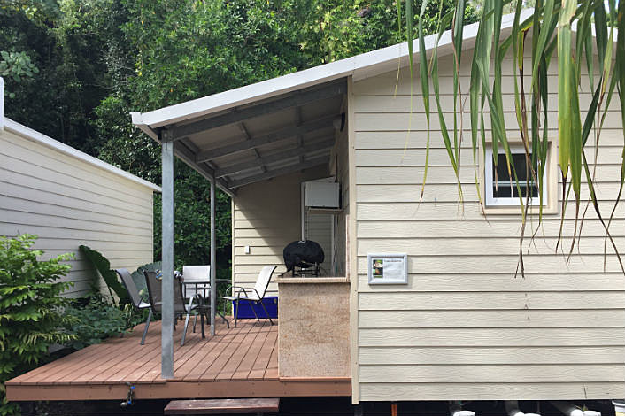 Overnight stay is in the 3 star Bungalows, which are self-contained and overlooking the beach. The bungalows are twin share and features a small internal food preparation area with mini bar fridge, microwave, kettle and toaster. There is an undercover outdoor deck with tables, chairs, large esky and Webber BBQ