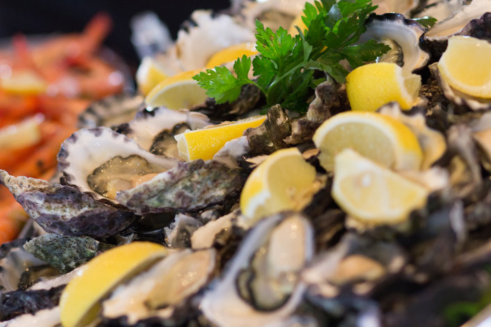 (GF) Chilled Sydney rock oysters served with sea salt and lemon wedges