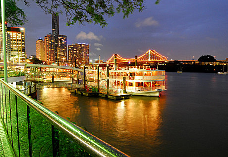 Boarding and disembarking from the Lower Boardwalk at Eagle Street Pier, 1 Eagle Street, Brisbane. Boarding from 6.30pm for a prompt 7:00pm departure. Please check in at our booking office on the boardwalk level at Eagle Street Pier prior to boarding the vessel. Check-in is open from 2 hours prior to your departure time